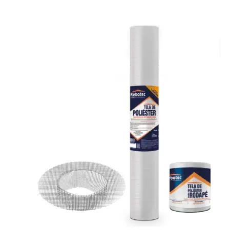 A Tela de Poliéster Rebotec é constituída de fios 100% poliéster. É utilizada como estruturante para materiais de impermeabilização, flexíveis e rígidos, proporcionando a formação de membrana e aumento da resistência à tração. Disponível em: Rolo de 1,05 x 50 m; Rolo de 0,21 x 35 m para Rodapé; Veda Ralo – 102 mm (4 polegadas) para vedação de ralos